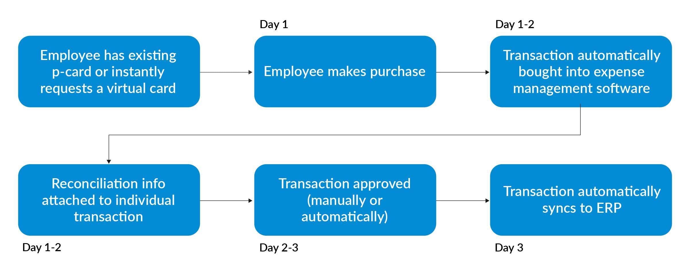 Handling p-card transactions alongside traditional T&E expenses is more efficient than dealing with them manually. However, it can still be a 30 day process depending on whether employees submit their expense reports manually right after the purchase(s), or if employees wait for the software to submit it automatically at the end of the reporting cycle (typically, two weeks). Bundling vendor purchases with T&E expenses can create extra work for the finance team at book closing, as they have to review a few weeks’ worth of transactions at a time.