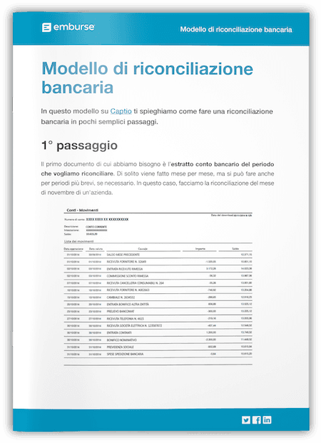 Ma qual è il modo giusto per farlo? Per aiutarti a semplificare ogni passaggio, ti proponiamo un documento sulla riconciliazione bancaria: ti basterà inserire i dati richiesti e la riconciliazione verrà effettuata automaticamente.