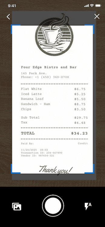 Employees can take a picture of their receipt, add expense details, and then throw it out.