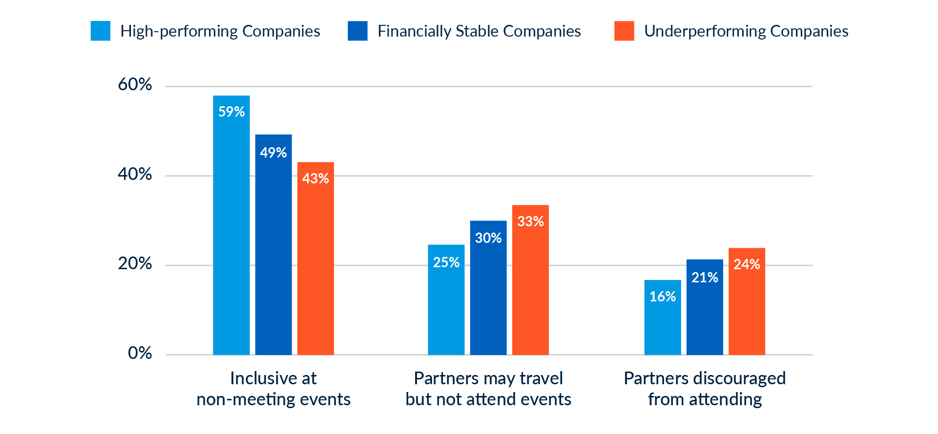 - 59% of employees can bring their significant other to non-meeting events, signaling more generous partner inclusion policies