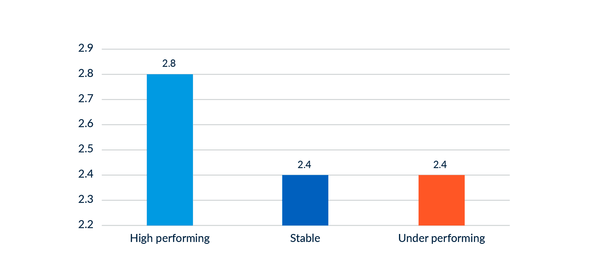 Underperforming companies show the lowest rate of complete coverage (26%), with the majority of their employees (53%) managing some level of incidental expenses. Stable companies appear to incur the most balanced impact to employee finances, with the lowest percentage of employees reporting major financial strain (15%).